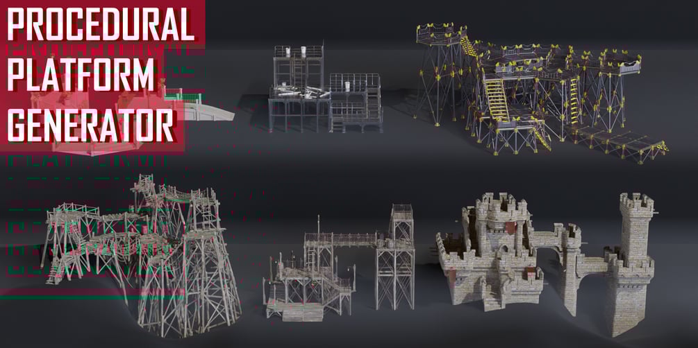 The node comes with premade assets to create six different styles of platform like the ones you see in the previews.